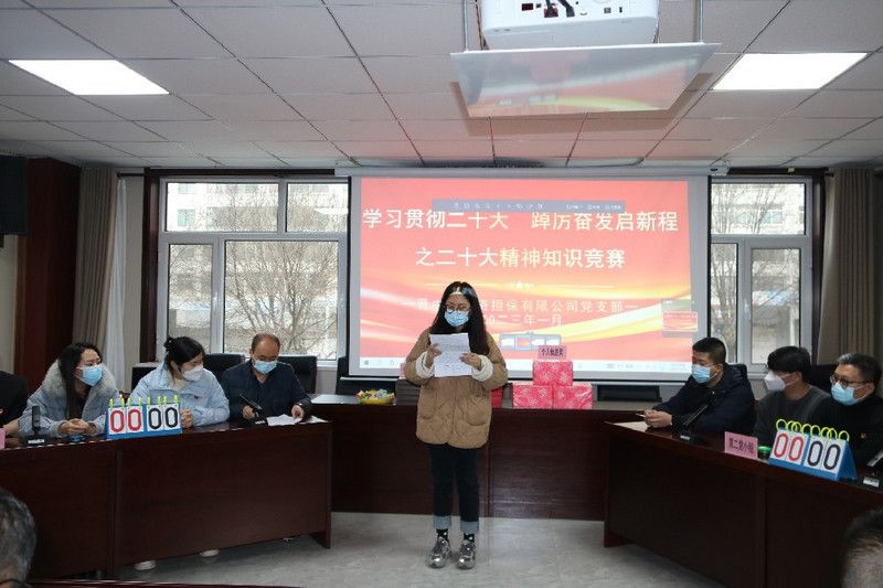 為深入學(xué)習宣傳貫徹黨的二十大精神,促進(jìn)黨員感悟思想、融會(huì )貫通,晉中擔保黨支部高度重視、精心策劃,于1月13日舉辦了“學(xué)習貫徹二十大,踔厲奮發(fā)啟新程”知識競賽活動(dòng)。公司全體黨員及積極分子參加。